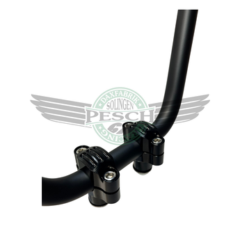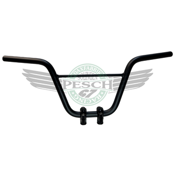 Lenker Set mit hochwertigen, versetzten CNC Lenkerklemmen, schwarz. Kann somit nahezu auf jeder Dax und Monkey verbaut werden. Der Lenker hat eine Strebe, ist schwarz und die Maße: 65cm Breit und 25cm hoch.